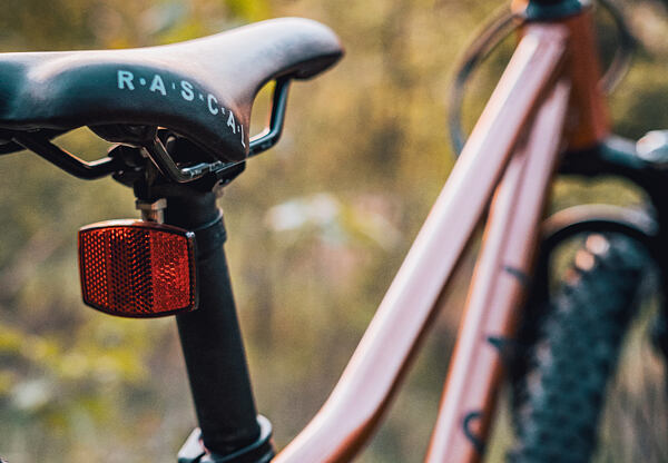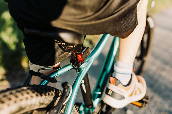 L'éclairage avant doit être blanc ou jaune et produire une lumière suffisamment intense pour éclairer la route devant le cycliste. Nous recommandons les éclairages LED rechargeables, performants et à faible consommation d'énergie, rechargeables par câble USB. De plus, ils sont légers et faciles à fixer au vélo.